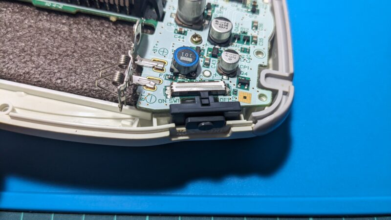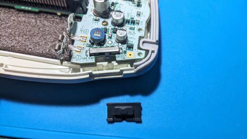 2001年に発売されたゲームボーイアドバンスは、既に24年が経過しているため各パーツが経年劣化していることもあり、今回のように電源スイッチの接触不良も起こりがちだ。