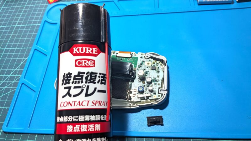 経年劣化でこのパーツ内の電気接点が接触不良を起こして電源が不安定になっていると思われるので、この部分を接点復活剤を吹き付けて、文字通り接点を復活させる。