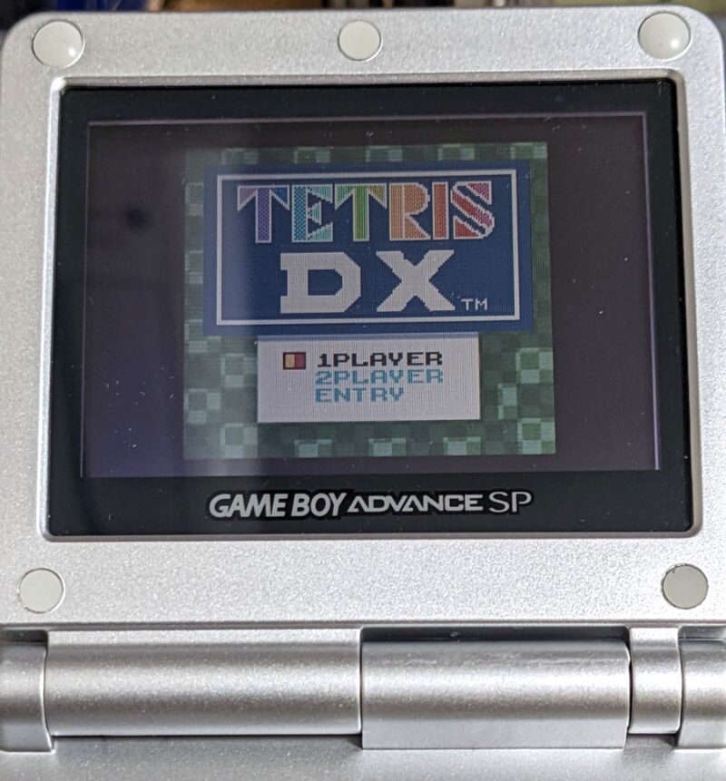 GBAの液晶は消費電力をおさえるため、液晶にバックライトが無く外からの光を反射して表示する「反射型TFT液晶」を採用しているため、仕様上どうしても色味がぼんやりとしてしまう。