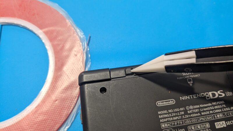 なお、年季の入ったDSの場合は手垢が糊のようになってパーツが固着していることもあるので、ちょっと取り外しが固い時もある。