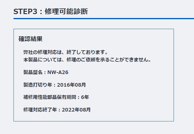 念のため、SONYにNW-A20シリーズのバッテリー交換修理を依頼するといくら位かかるものか相場を調べてみたところ……