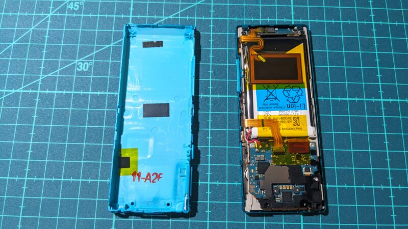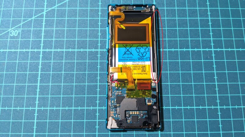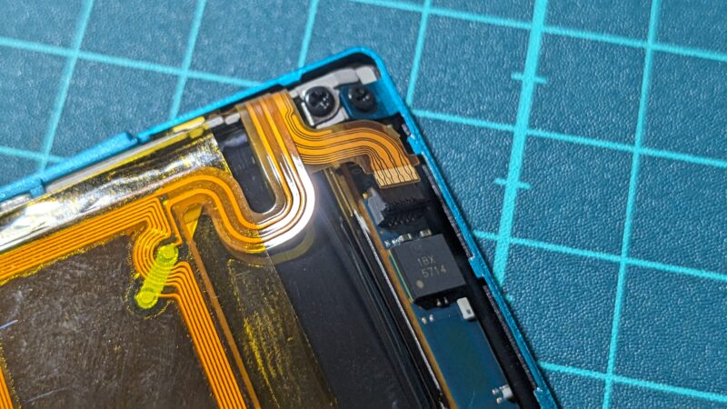 上はNFCのアンテナで、下はおそらく音量ボタンのフレキケーブルを固定するカプトンテープだろう。