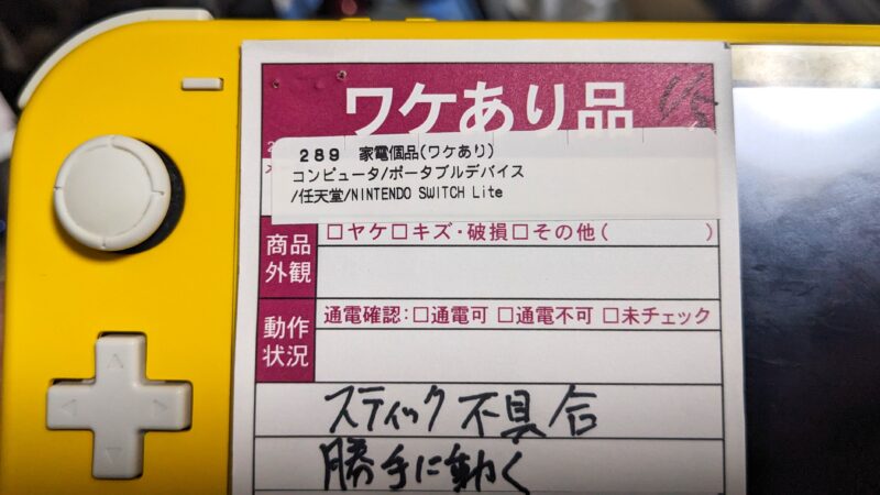 最近中古ショップでSwitch Liteを気にしてチェックしているせいか「スティックが勝手に動きます(ドリフトします)」という不具合のある中古品を見かける機会が増えたような気がする。
